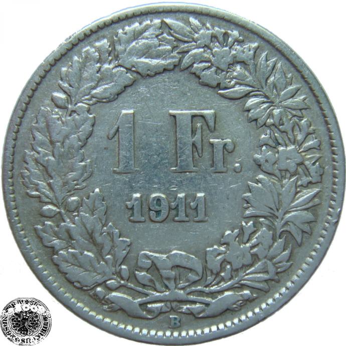 LaZooRo: Švica 1 Franc 1911 VF/XF c - Srebro