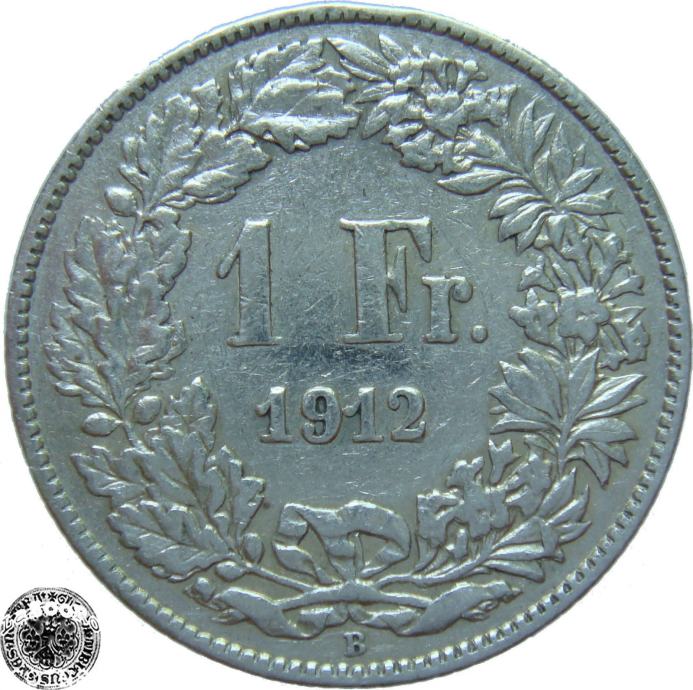 LaZooRo: Švica 1 Franc 1912 VF/XF c - Srebro