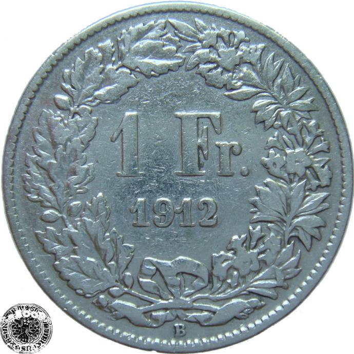 LaZooRo: Švica 1 Franc 1912 VF/XF d - Srebro