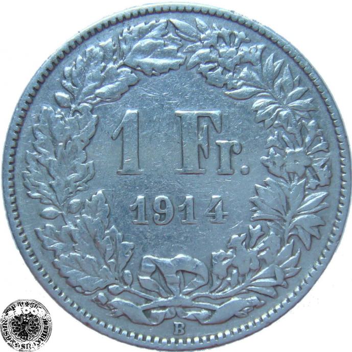 LaZooRo: Švica 1 Franc 1914 VF/XF e - Srebro