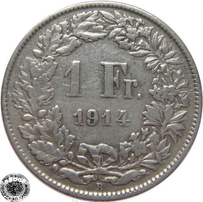 LaZooRo: Švica 1 Franc 1914 VF/XF h - Srebro