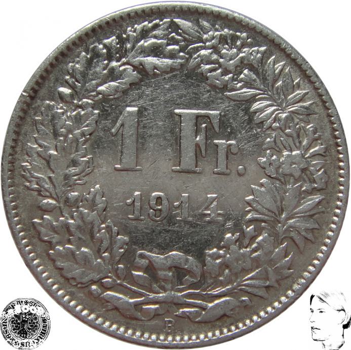 LaZooRo: Švica 1 Franc 1914 VF/XF i - Srebro