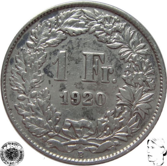 LaZooRo: Švica 1 Franc 1920 XF j - Srebro