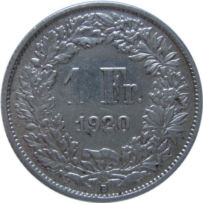LaZooRo: Švica 1 Franc 1920 XF - Srebro