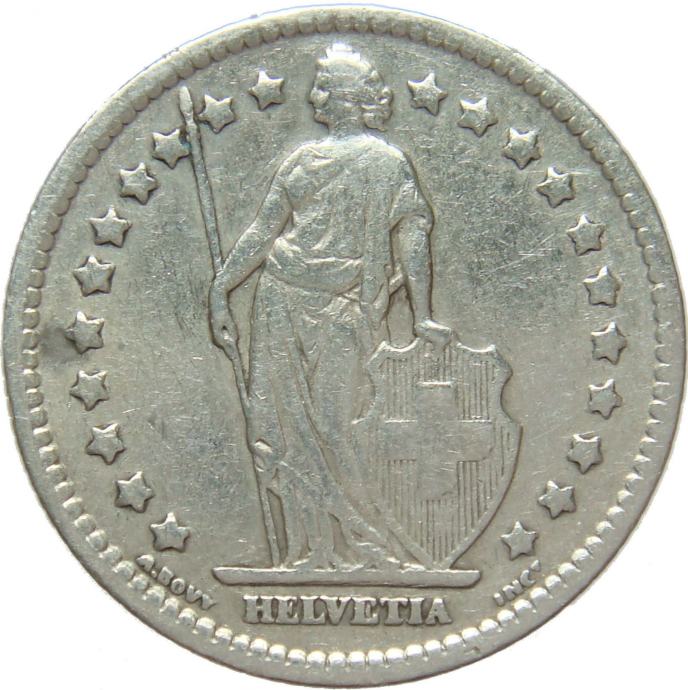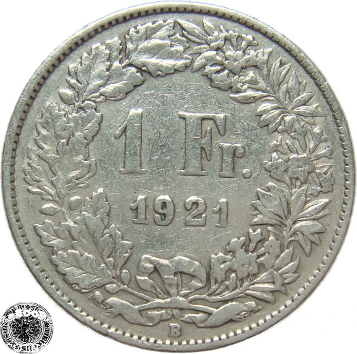LaZooRo: Švica 1 Franc 1921 VF/XF b - Srebro