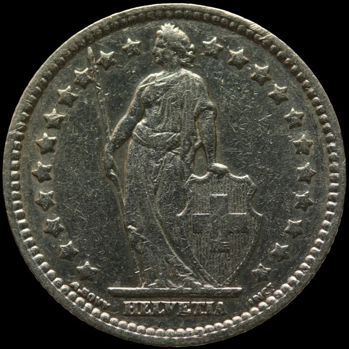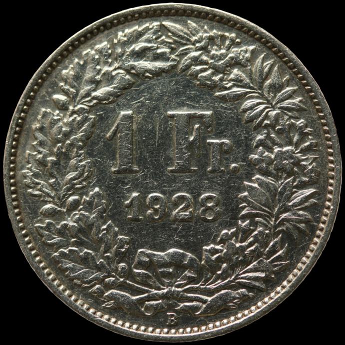 LaZooRo: Švica 1 Franc 1928 SPECIMEN a - Srebro