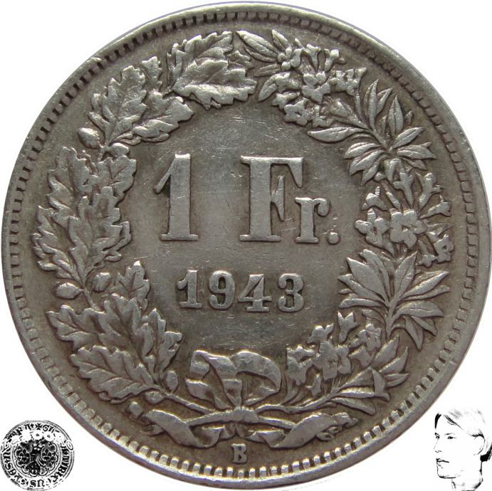 LaZooRo: Švica 1 Franc 1943 XF d - Srebro