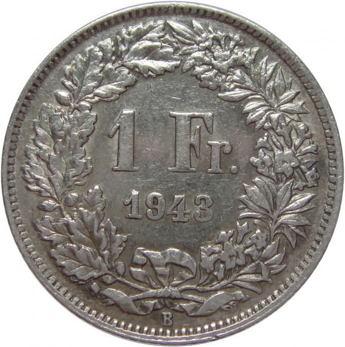 LaZooRo: Švica 1 Franc 1943 XF f - Srebro