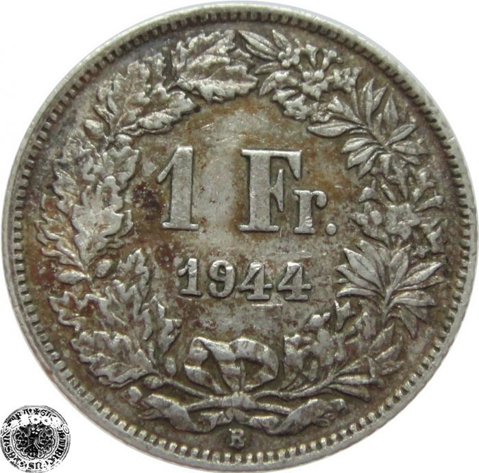 LaZooRo: Švica 1 Franc 1944 XF b - Srebro