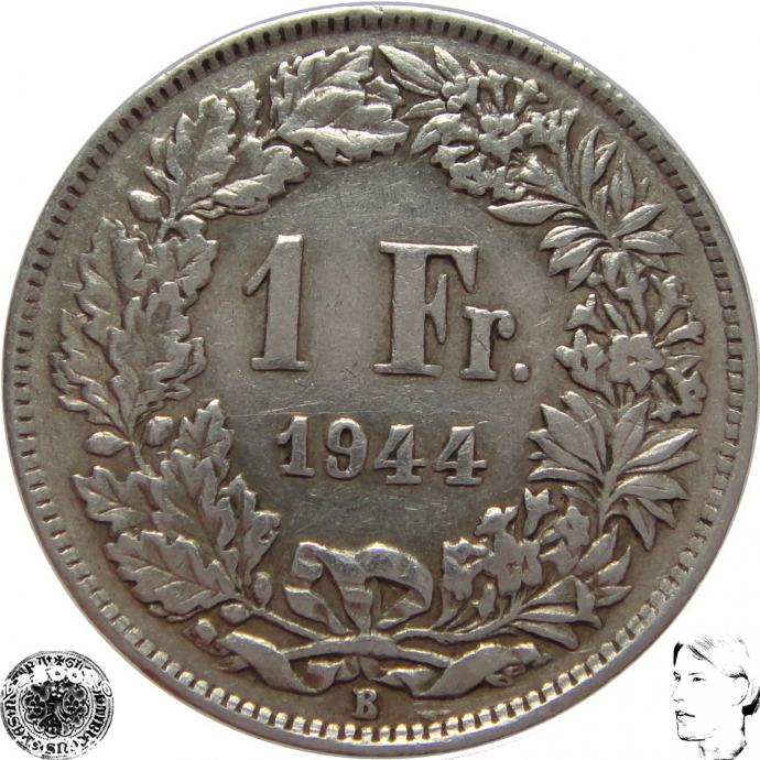 LaZooRo: Švica 1 Franc 1944 XF d - Srebro