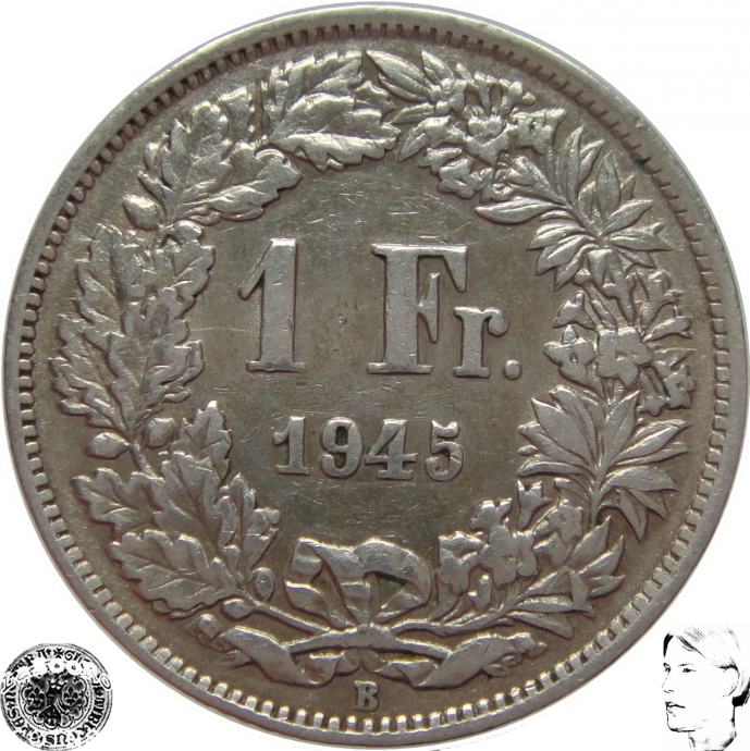 LaZooRo: Švica 1 Franc 1945 XF g - Srebro