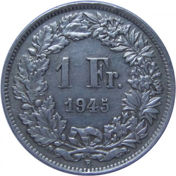 LaZooRo: Švica 1 Franc 1945 XF l - Srebro