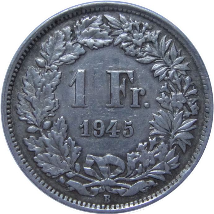 LaZooRo: Švica 1 Franc 1945 XF m - Srebro