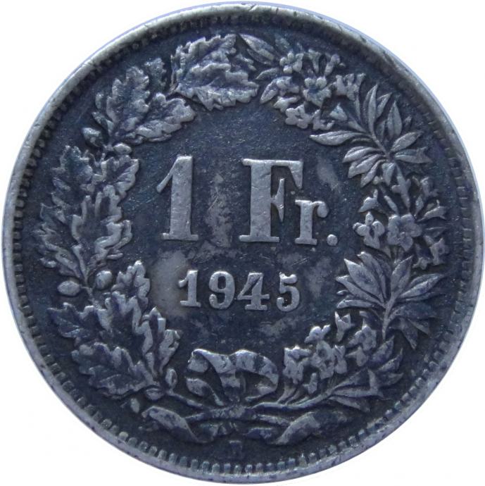 LaZooRo: Švica 1 Franc 1945 XF i - Srebro