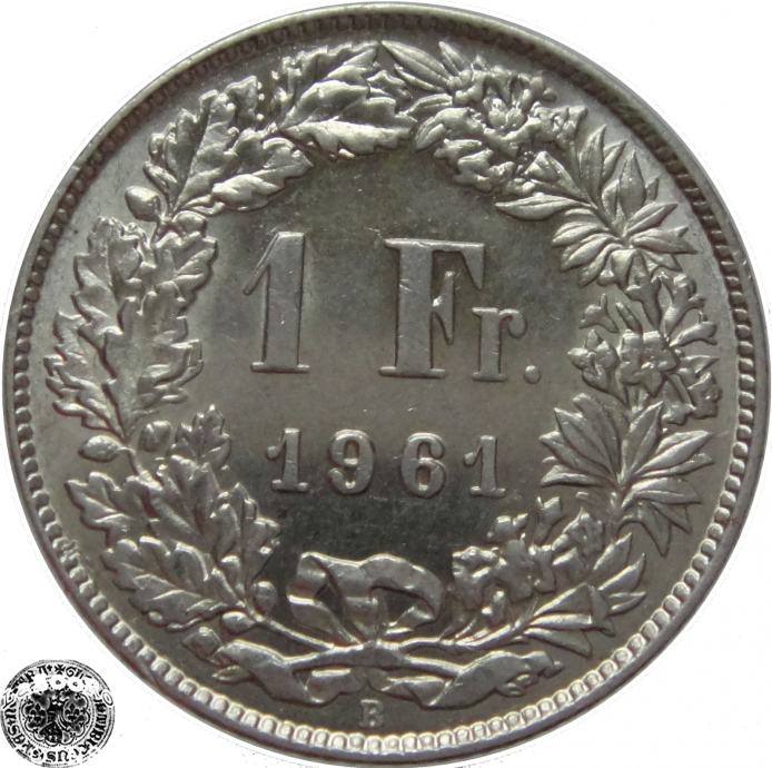LaZooRo: Švica 1 Franc 1961 XF/UNC b - Srebro