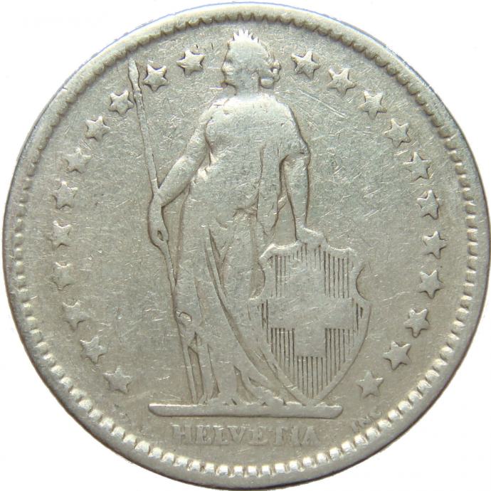 LaZooRo: Švica 2 Francs 1907 VF - Srebro
