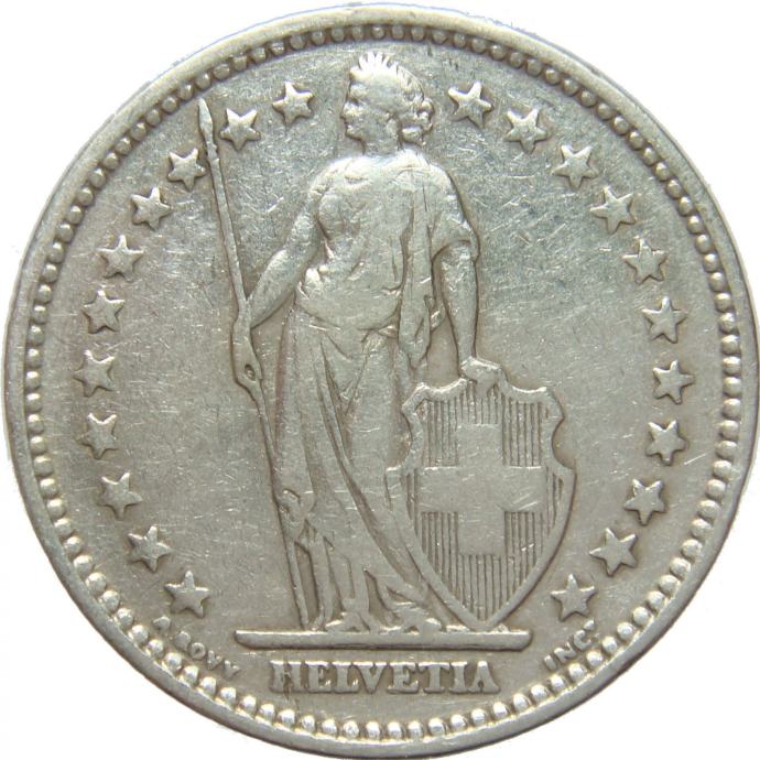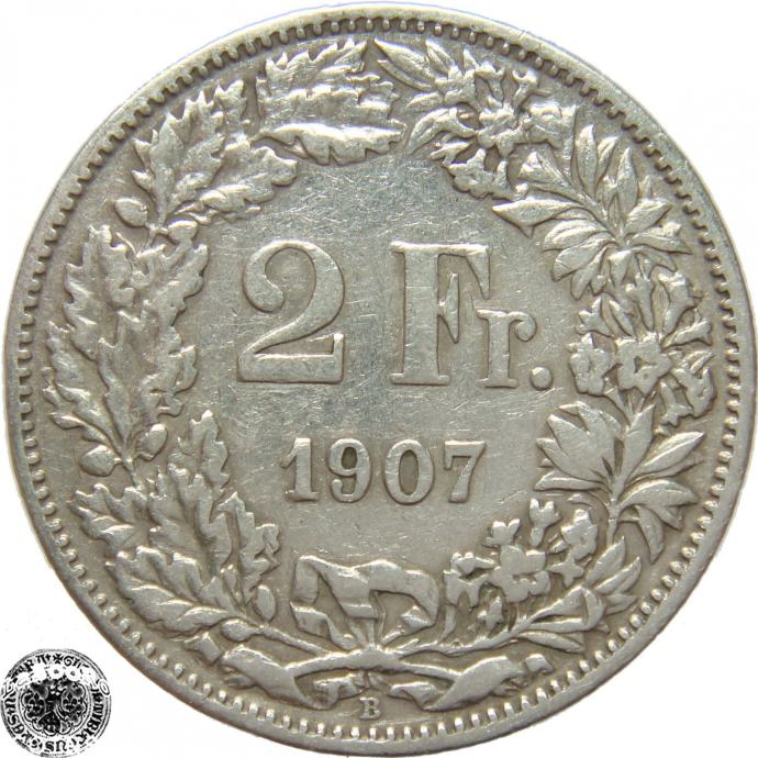 LaZooRo: Švica 2 Francs 1907 VF/XF b - Srebro