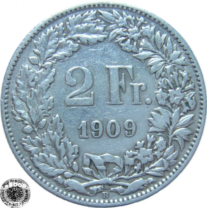 LaZooRo: Švica 2 Francs 1909 VF/XF a - Srebro