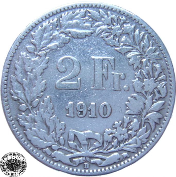 LaZooRo: Švica 2 Francs 1910 VF/XF a - Srebro