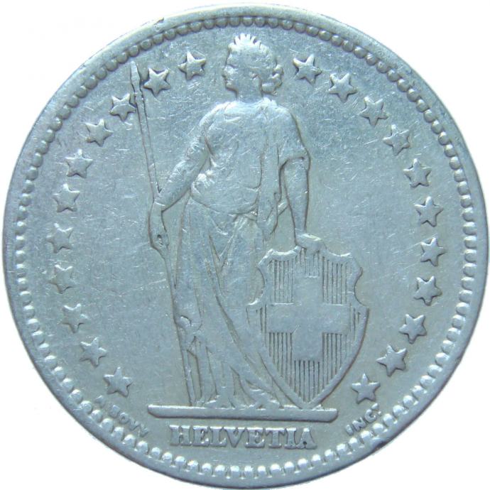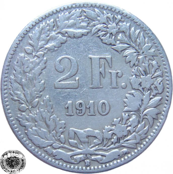 LaZooRo: Švica 2 Francs 1910 VF/XF b - Srebro