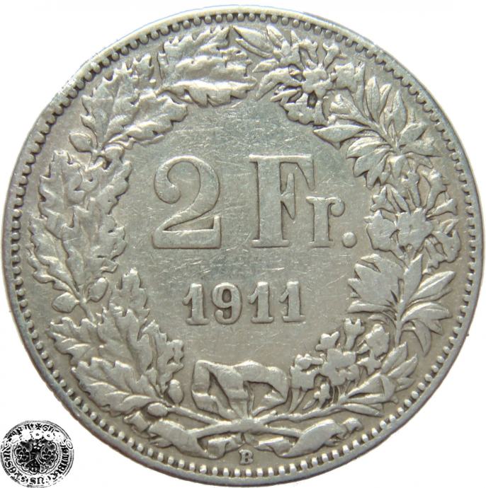 LaZooRo: Švica 2 Francs 1911 VF/XF c - Srebro