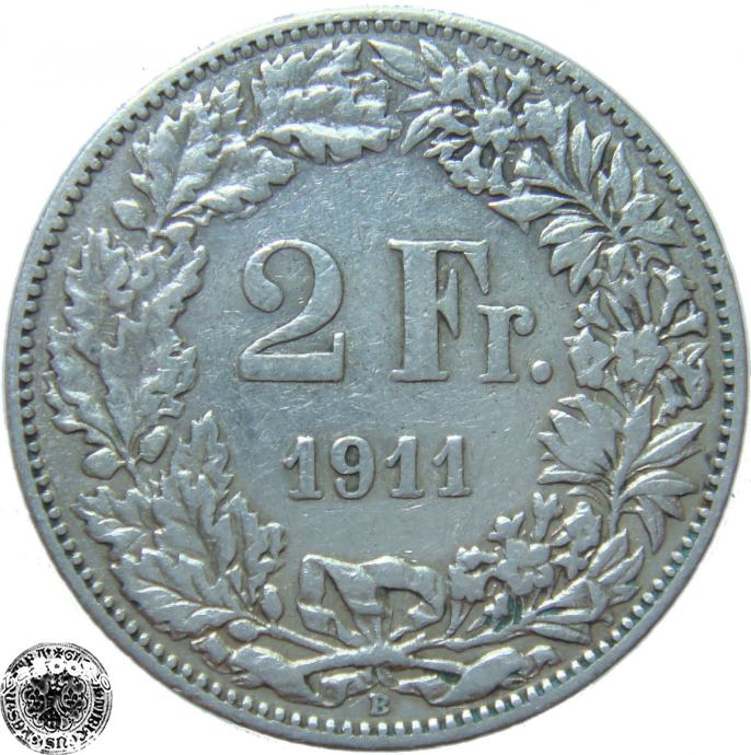 LaZooRo: Švica 2 Francs 1911 VF/XF d - Srebro