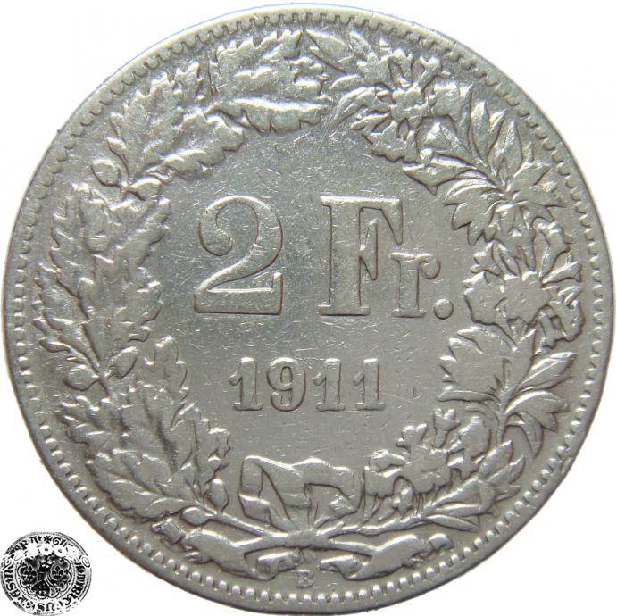 LaZooRo: Švica 2 Francs 1911 VF/XF - Srebro