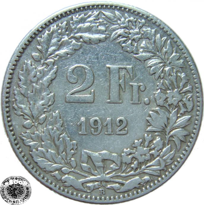 LaZooRo: Švica 2 Francs 1912 VF/XF a - Srebro