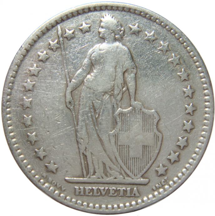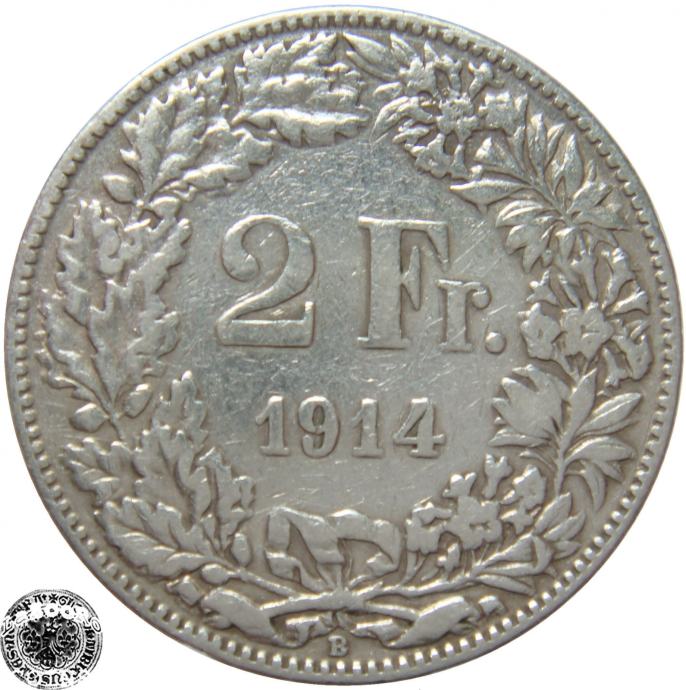 LaZooRo: Švica 2 Francs 1914 VF/XF c - Srebro