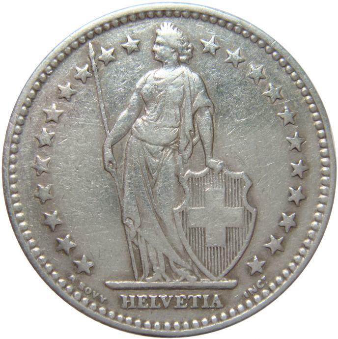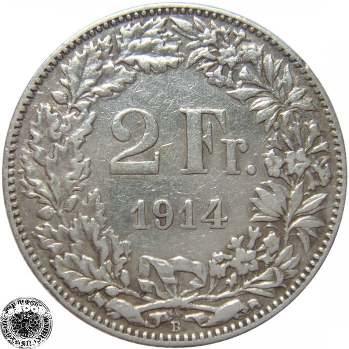 LaZooRo: Švica 2 Francs 1914 VF/XF f - Srebro