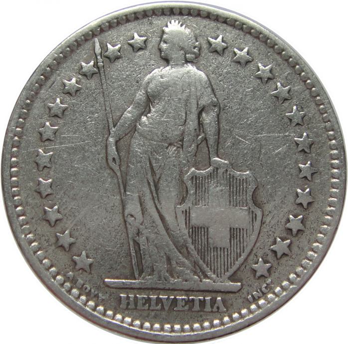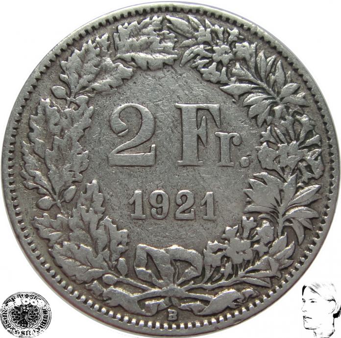 LaZooRo: Švica 2 Francs 1921 VF e - Srebro