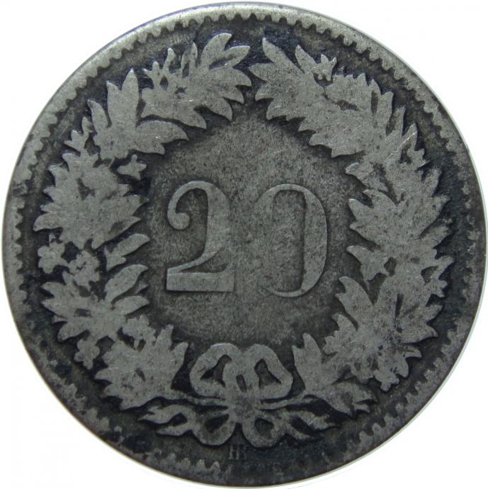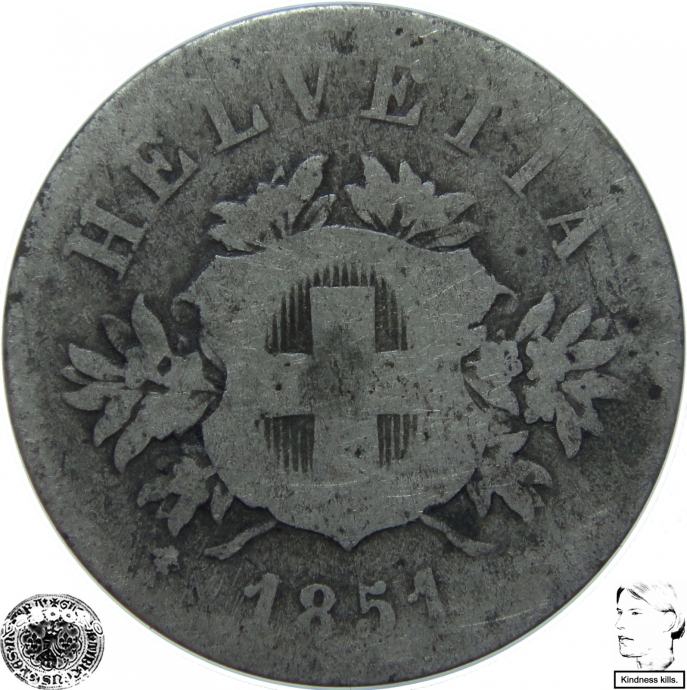 LaZooRo: Švica 20 Rappen 1851 F - Bilon
