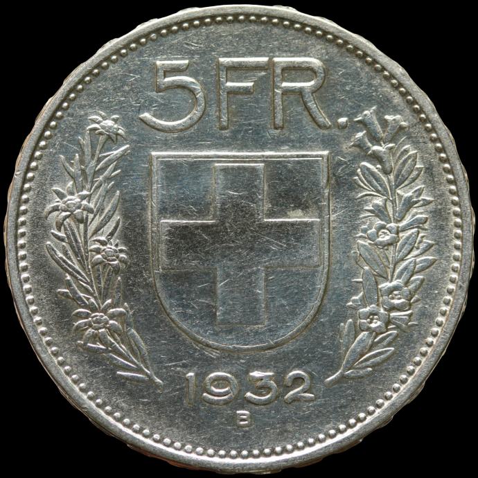 LaZooRo: Švica 5 Francs 1932 XF - srebro