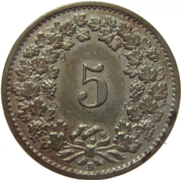 LaZooRo: Švica 5 Rappen 1919 XF a