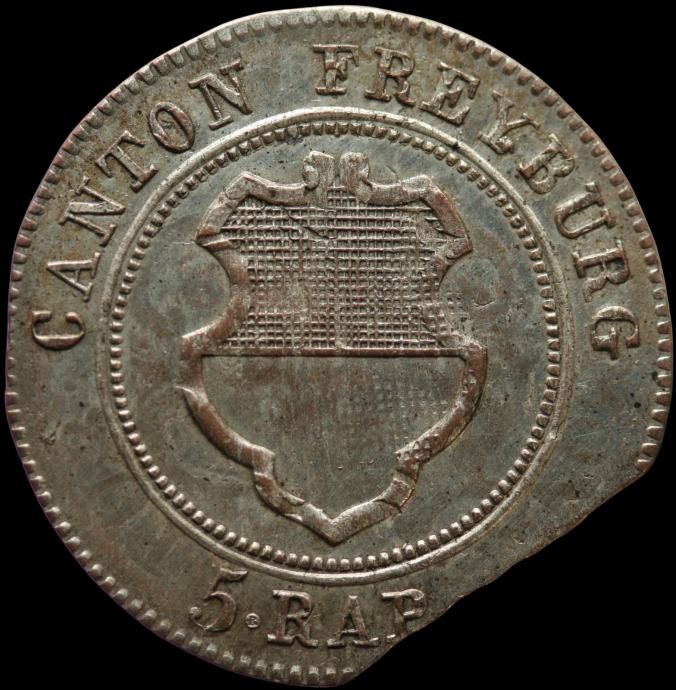 LaZooRo: Švica FREIBURG 5 Rappen 1831 UNC na KM# 47 2 Kreuzer napaka pri rezu - srebro