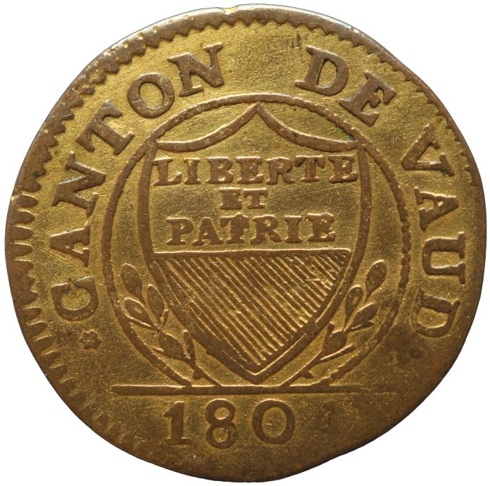 LaZooRo: Švica VAUD 1 Batzen 1804 VF pozlačen predstavitveni vzorec kratke veje - srebro