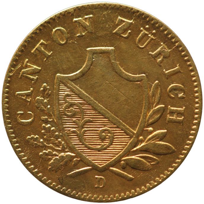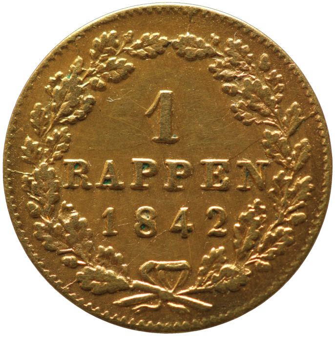 LaZooRo: Švica ZURICH 1 Rappen 1842 D XF / UNC predstavitveni vzorec unikat 0,78 g - zlato