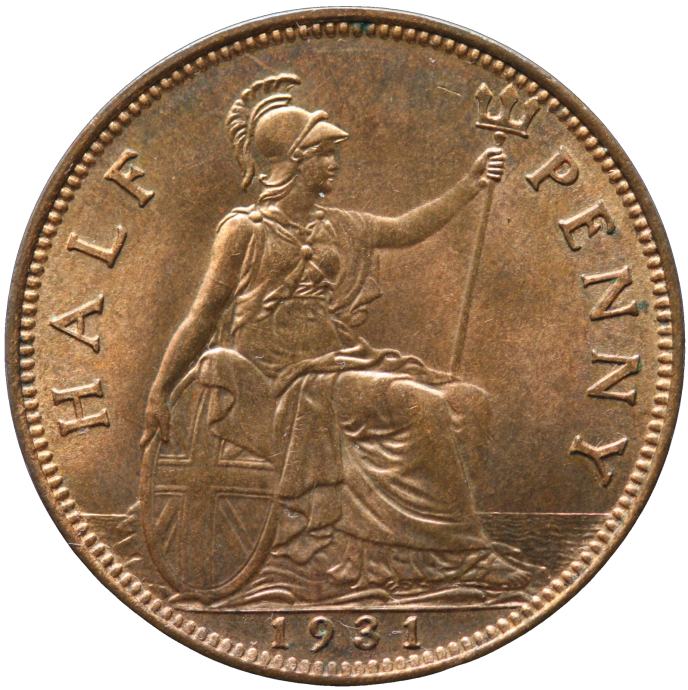 LaZooRo: Velika Britanija 1/2 Penny 1931 UNC