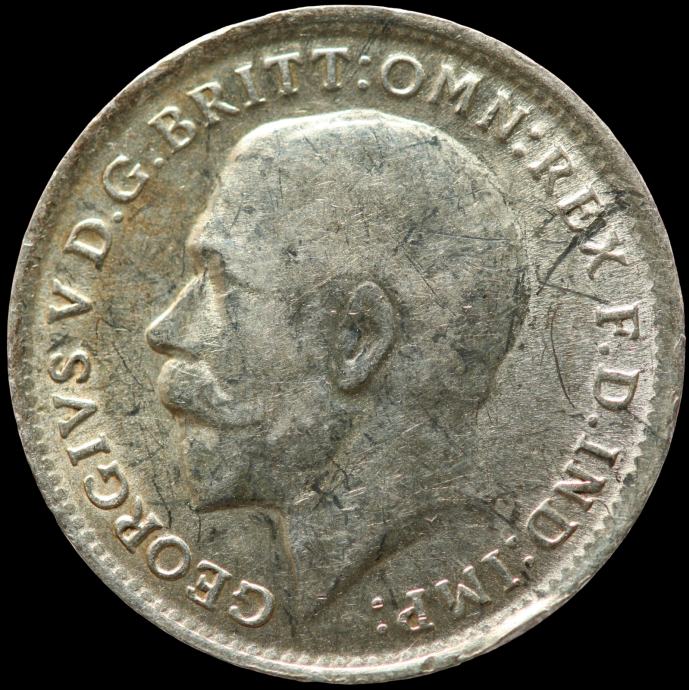LaZooRo: Velika Britanija 3 Pence 1917 UNC - srebro
