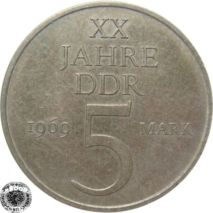 LaZooRo: Vzhodna Nemčija 5 Mark 1969 XF/UNC 20 let redek