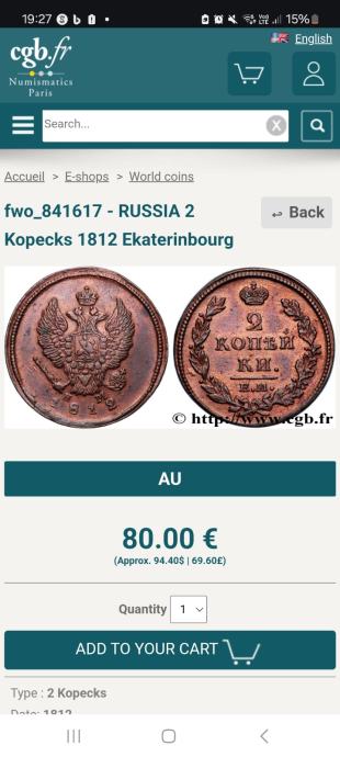 Kovanec 2kopecks Russia Leto 1812...