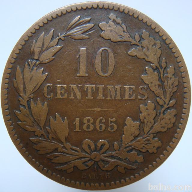 Luksemburg 10 Centimes 1865 VF/XF