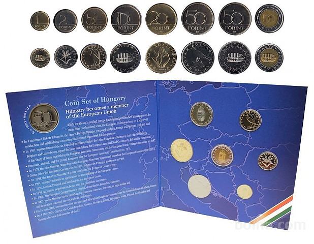 Prodaja se originalni madžarski set letnik 2004.Set je odlično ohranjen. Kovanci v setu so BU kvalitete.Naklada 8000 kosov.Izdan ob vstopu Madžarske v EU.