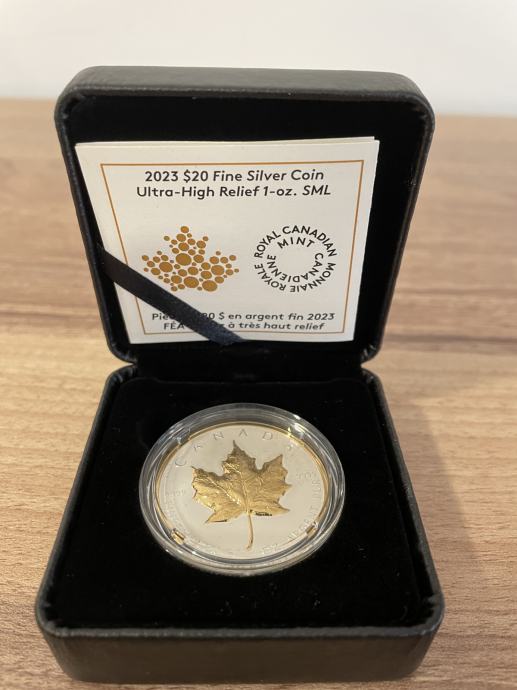 Iz svoje zbirke prodam 1oz srebrnik MAPLE LEAF Ultra High Relief