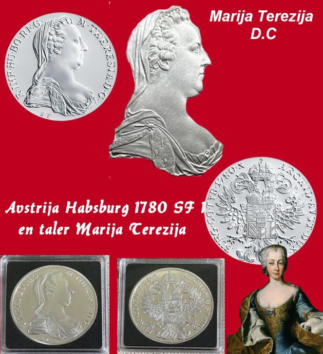 Avstrija Habsburg 1780 SF 1 thaler. Maria Terezija.Medeninasto prevlečen srebrni kovanec visoke kakovosti.