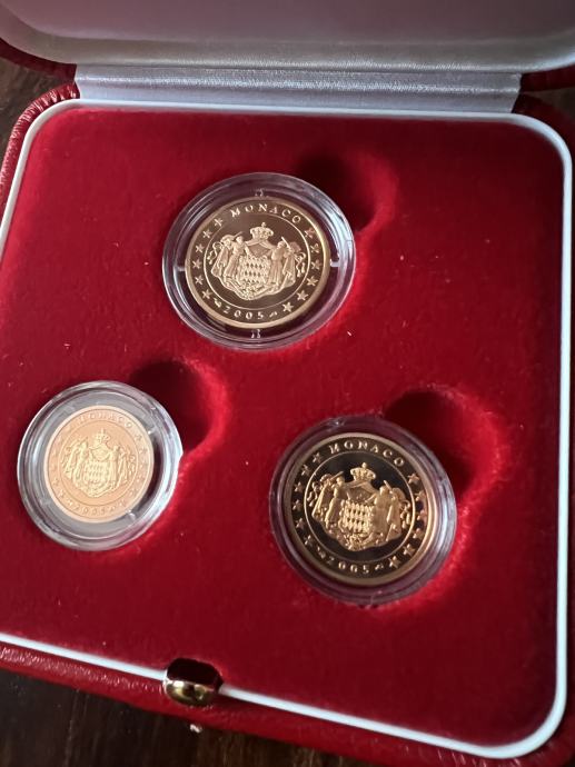 2005, Kneževina Monako, kovanci za 1, 2 in 5 centov v proof izvedbi