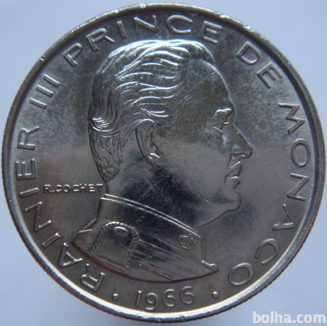 Monako 1 Franc 1966 aUNC redkejši