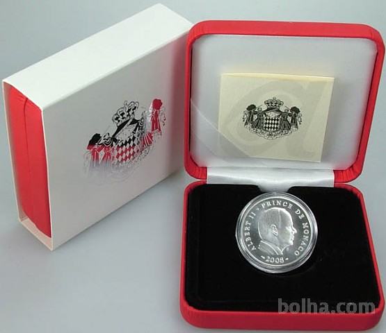 Prodaja se monaški srebrnik,letnik 2008.Nominalna vrednost 5 evrov.Kovanec je originalno zapakiran s certifikatom.Teža srebrnika je 12 gramov.Čistoča srebra je 900/1000.Premer 32 mm.