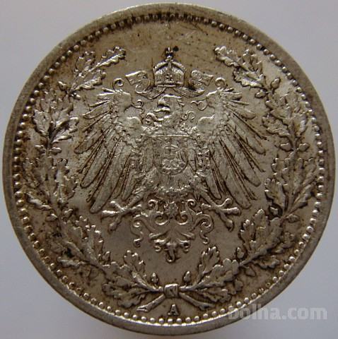 Nemčija 1/2 Mark 1916 G UNC - Srebro