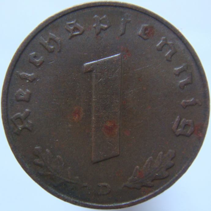 Nemčija 1 Pfennig 1937 D XF/UNC